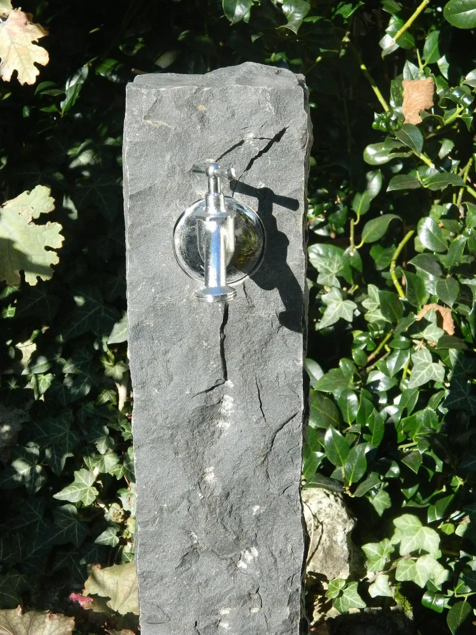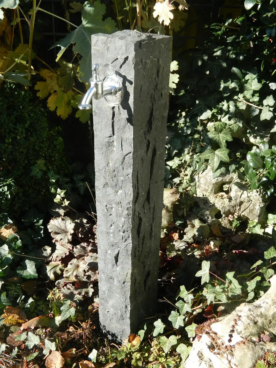 Wasserzapfsäule aus gespaltenem und nachgearbeiteten Basalt