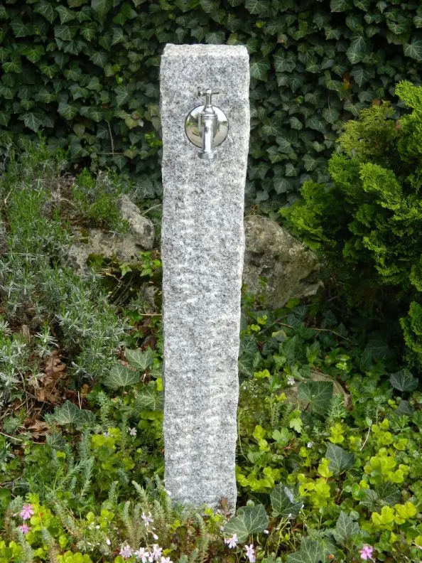 Entdecken Sie unsere elegante Wasserzapfsäule aus hochwertigem, grauen Granit. Diese exquisit gestaltete Zapfsäule vereint Funktionalität mit ästhetischem Design und wird zum Blickfang in Ihrem Garten, auf Ihrer Terrasse oder in Ihrem Außenbereich.